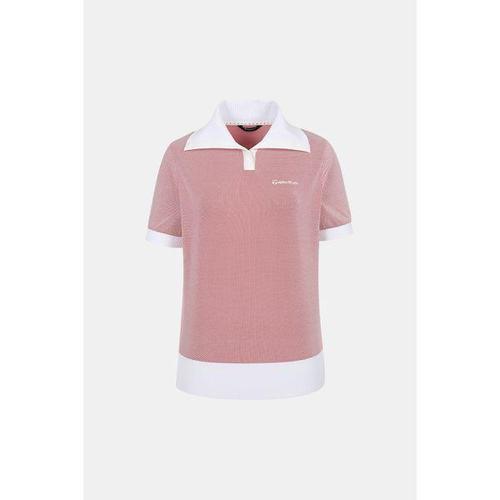 [테일러메이드]여성 배색 골조직 카라 반팔 니트 TWSRM6122-509