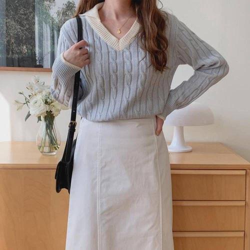 크롭니트 브이넥니트 반팔니트 카라 꽈배기니트