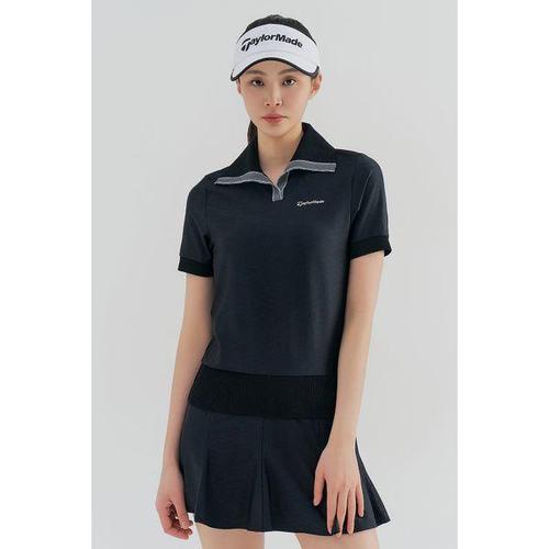 [테일러메이드]여성 배색 조직 변형 카라 반팔 니트 TWSRM6121-199
