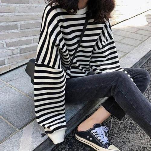 [셀러허브_여성트랜드패션]ONM 여자 2컬러 봄 가을 데일리 줄무늬 긴팔티 맨투