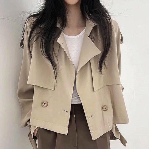 봄 가을 숏 트렌치자켓 더블 여자 단추 크롭 기장 WFLQ8BB