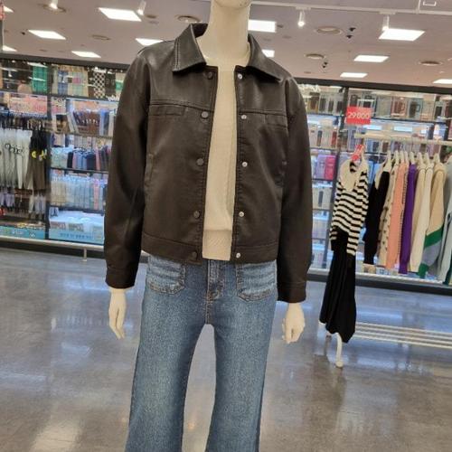 라티움 HC34 봄,가을페이크가죽 스텐카라우레탄소재숏점퍼 H라인형 T2517jk