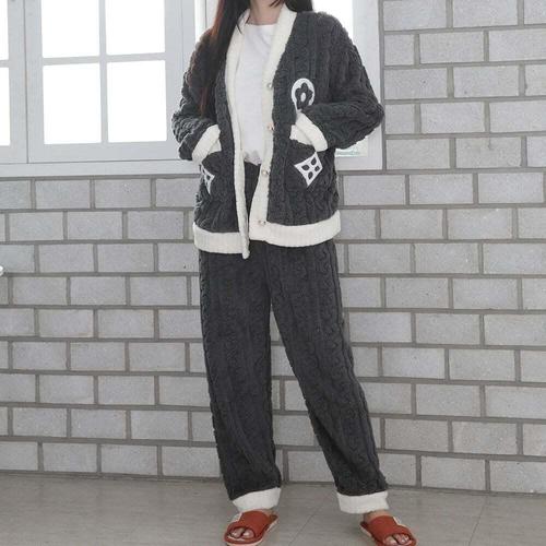 파자마 양털 뽀글리 밑단 프릴 레이스 여성 수면 잠옷 세트