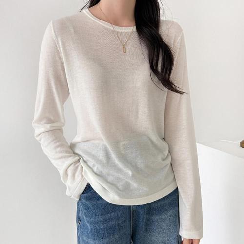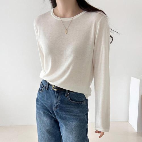 여성 라운드 얇은 간절기 무지 베이직 긴팔 니트티 NYS-WKN-4798-아이보리