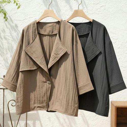 [옷은날개] 린넨 소재 여름용 세미 크롭 숏 슬리브 재킷