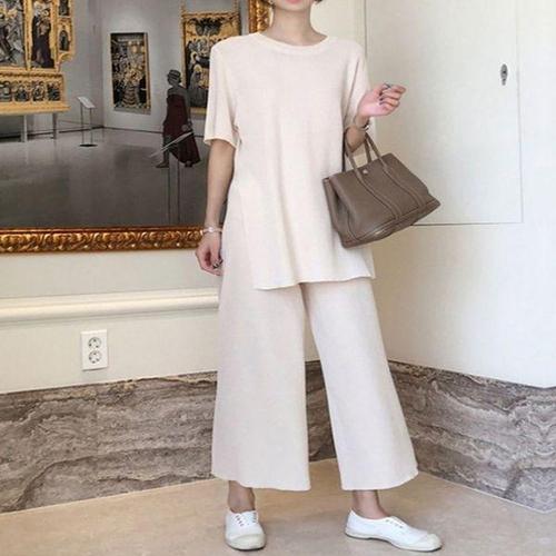 [에이치플러스몰]여름 쿨한 여자 여유핏 쿨 반팔티 일자팬츠 세트