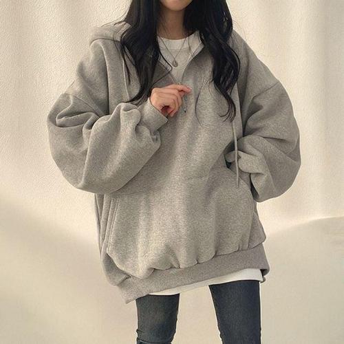 여성 2컬러 데일리 오버핏 무지 후드집업