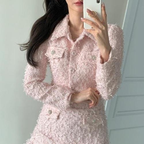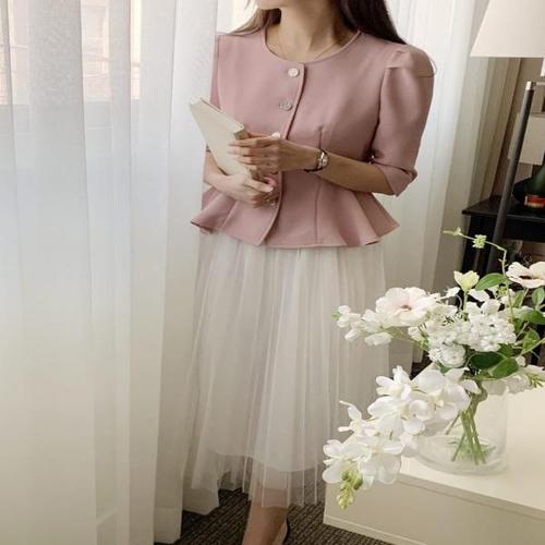 [다잇템]여자 봄 하객룩 파스텔 핑크 반팔 트위드 자켓