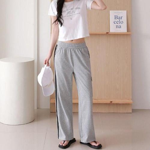 [신상오픈런]여성용 배색 프릴 와이드 밴딩 트레이닝 팬츠