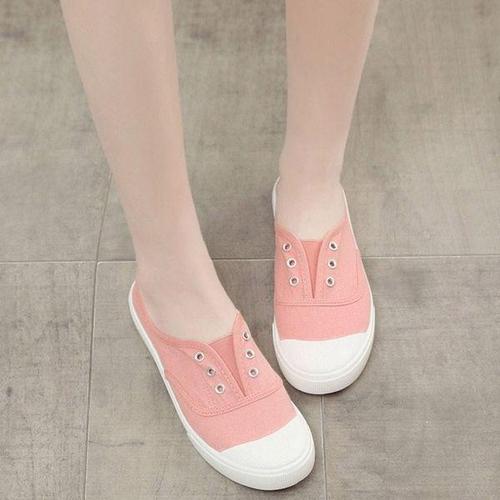 [신상오픈런]여자 끈없는 무지 코튼 캔버스 운동화