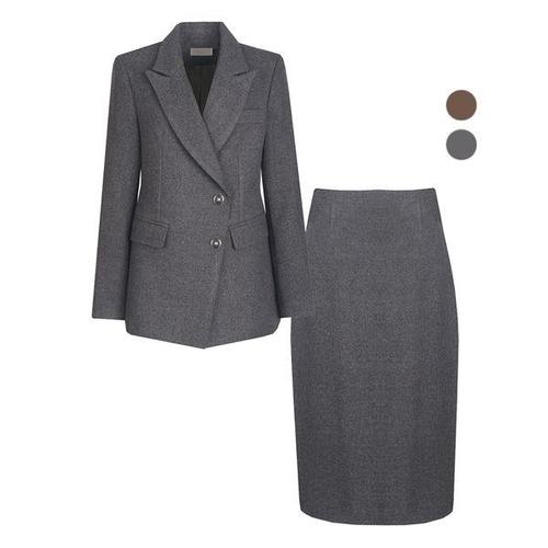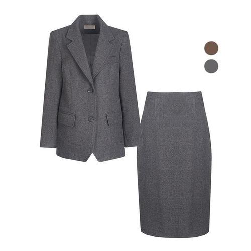 갤러리아_SET 여성 겨울 정장 헤링본 울자켓_기모스커트 세트