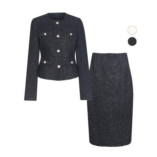 [비비드 시크릿가너]SET 여성 샤방 봄가을 트위드 정장 자켓+스커트 세트