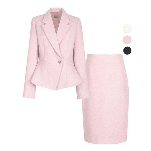 [비비드시크릿가너]SET 여성 페플럼 겨울 정장 자켓+미디 스커트 세트