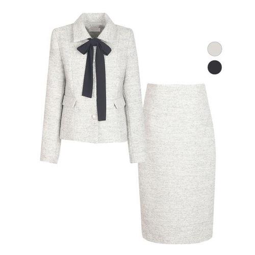 [비비드시크릿가너]SET 여성 타이 트위드 겨울 정장 울자켓+스커트 세트