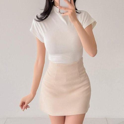[셀러허브_여성트랜드패션]ONM 반팔 캡소매 무지 쫄 티셔츠 하프넥 여자 여름