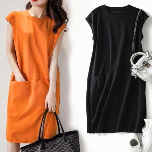 민소매 원피스 편한 주머니 쿨 반팔 데일리 스타일 WFLQ82X