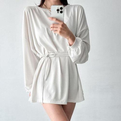 [다잇템]여자 스트랩 리본 큰사이즈 편한티 미니원피스