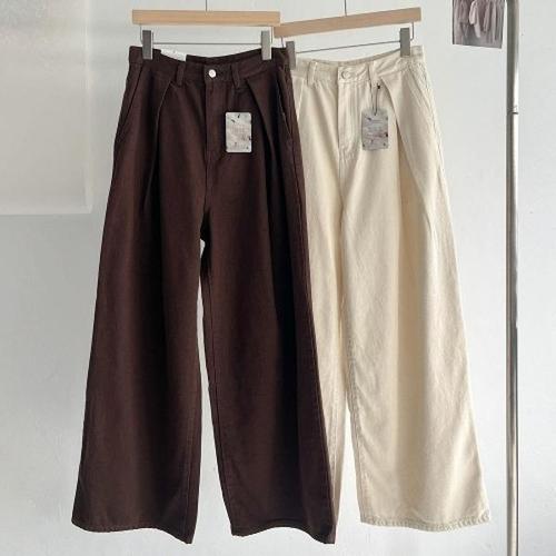 [다잇템][다잇템] 여성 면원단 갈색 넓은 키 핀턱 큰 롱 팬츠_23764283_588872
