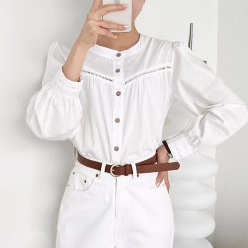 [엄지척]여성 흰색 블라우스 펀칭 퍼프 직장인 오피스룩_19650172_667501