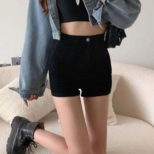 [셀럽하우스]여성 ASKL5438 여름 하이웨이스트 스판 블랙 핫팬츠 숏 반바지