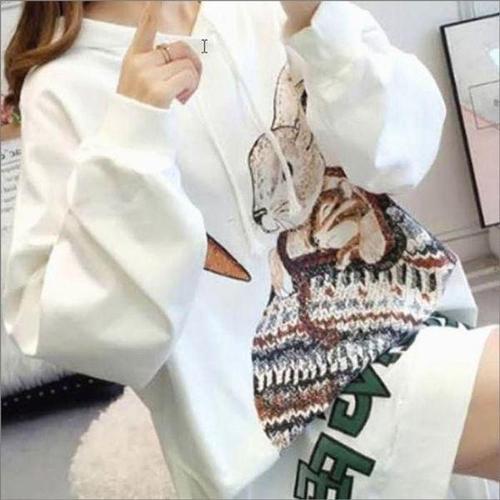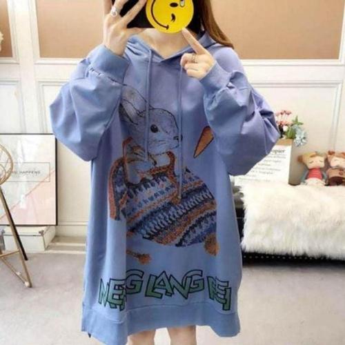 [셀러허브_여성트랜드패션]여자 토끼 후드 티셔츠 프린팅 기장 맨투맨 롱 루즈핏 힙덮는