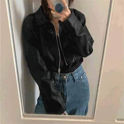 [끌레아]여성 레더 재킷 카라넥 오버핏 바이크 아우터 가죽자켓
