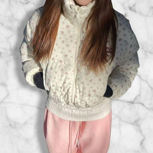 [미라클세븐]여성용 데일리 사랑스러운 꽃무늬 캐주얼 경량 숏패딩