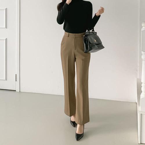 부츠컷슬랙스 세미와이드 일자팬츠 여성정장바지 스판 밴딩 기모