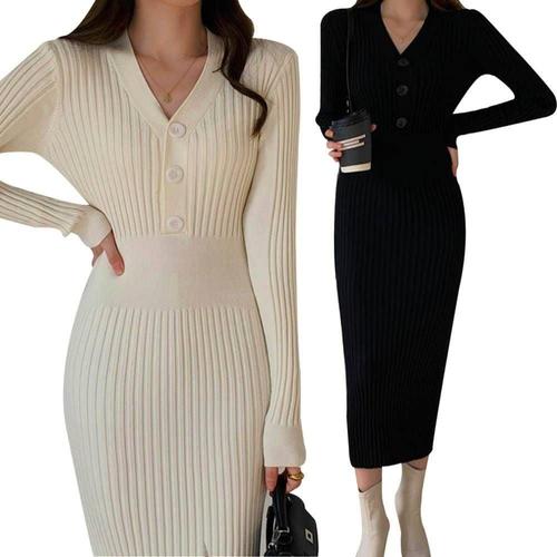 니트원피스 하객 긴팔 가을겨울 골지 미디 가을 WFLQAS4