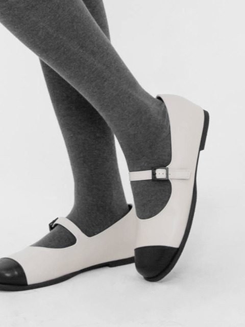 여성 메리제인 가죽 플랫 슈즈 털내피