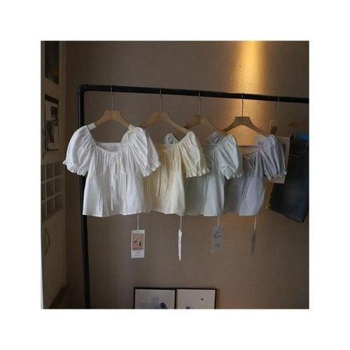 [셀러허브_여성트랜드패션]Rly 퍼프소매 크롭블라우스 스퀘어넥 셔링탑 러블리핏