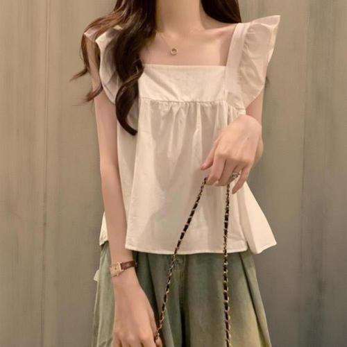 [신상오픈런]여성용 러블리 레이스 민소매 블라우스 핀턱 프릴 디자인