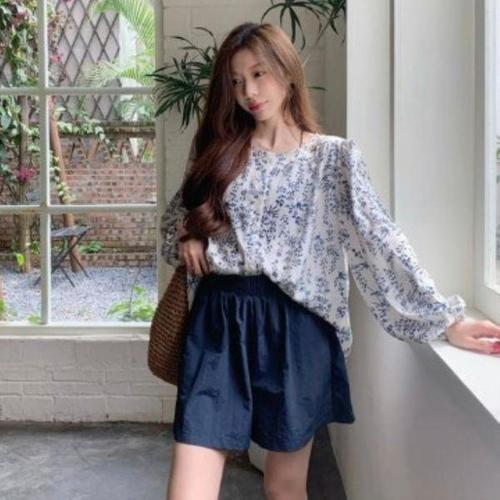 [옷자락] 여성 러블리 플라워 노카라 긴팔 루즈 블라우스