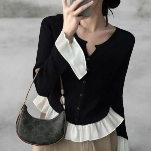 [신상오픈런]여성용 러블리 레이어드 긴팔 니트 블라우스 트임 디자인
