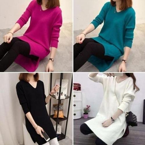 오스틱니 (완전 편한) 150kg까지 빅사이즈 여성 브이넥 롱 니트 스웨터 겨울 날씬해보이는 우아한 루즈핏 이너 레드 그린색 블루 무지 보송 미디티 큰옷 여성의류 3xl 하프 데일