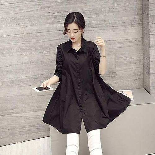 [엄지척]여성 귀여운스타일 화이트 블랙 롱셔츠 A라인 포인트_19652083_667501