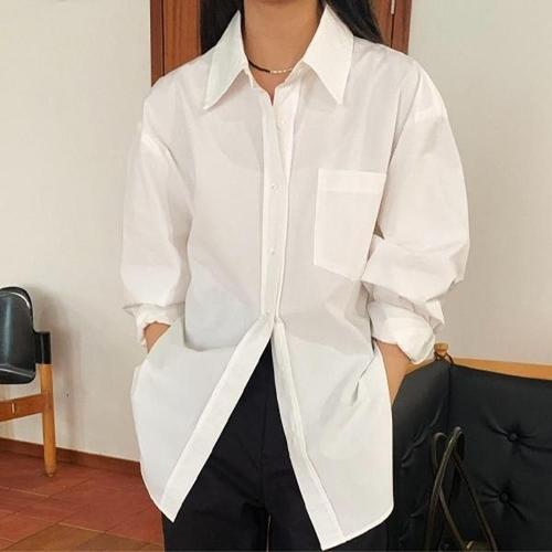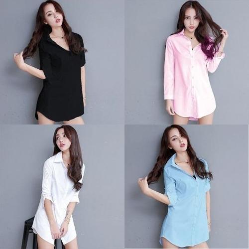 여성오버핏셔츠 와이셔츠 블라우스 데일리 베이직 무지 롱셔츠 블라우스 사무실 정장 직장 하객룩