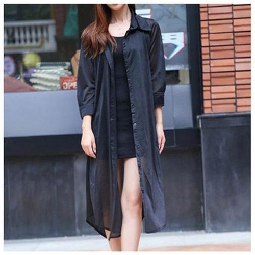 여성오버핏롱셔츠 블라우스 와이셔츠 쉬폰 소재 오버핏 롱셔츠 사무실 직장 하객룩