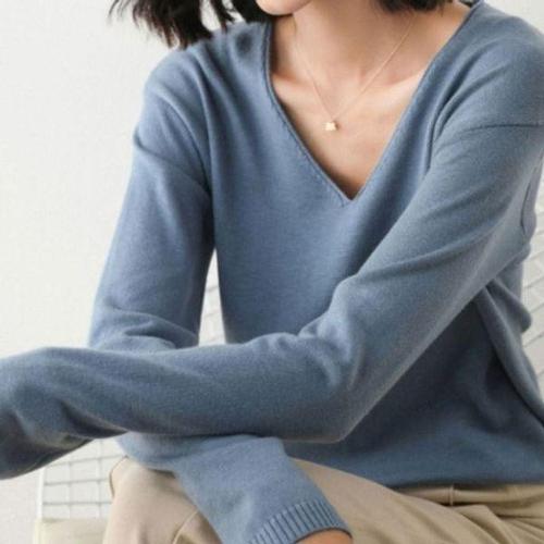 [에이치플러스몰]여성 브이넥 티셔츠 여자 니트 긴팔티 무지티 8색 여성긴팔티셔츠