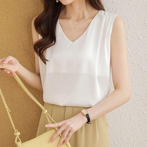 [엄지척]민소매 블라우스 정장룩 브이넥카라 직장인룩_19659127_667501