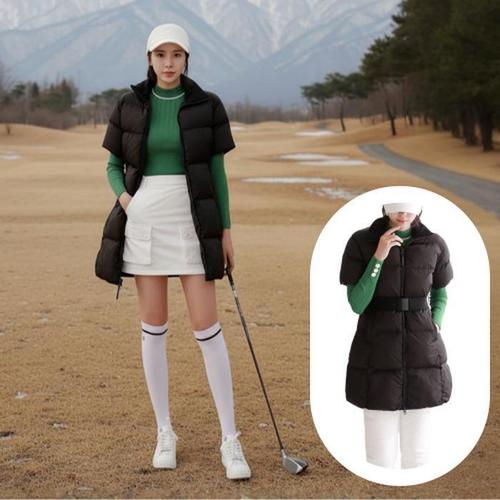 [김영주골프][김영주골프] 겨울 버클밸트 숏슬리브 하프 기장 여성 골프 반팔 패딩 점퍼 DPWLJP09