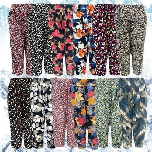 해피유통 여성 순면 얇은 빅사이즈 와이드 캐주얼 밴딩 배기 7부 팬츠 jhljq