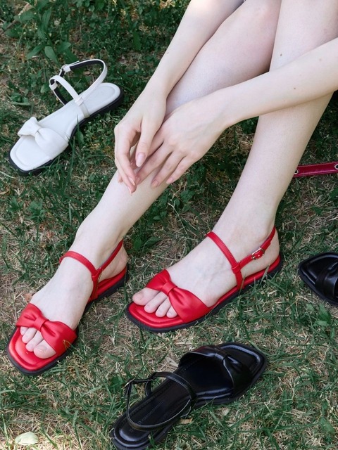[스퍼] 벨 블룸 스트랩 발편한 리본 플랫 샌들 1.5cm -VS8098 (3color)