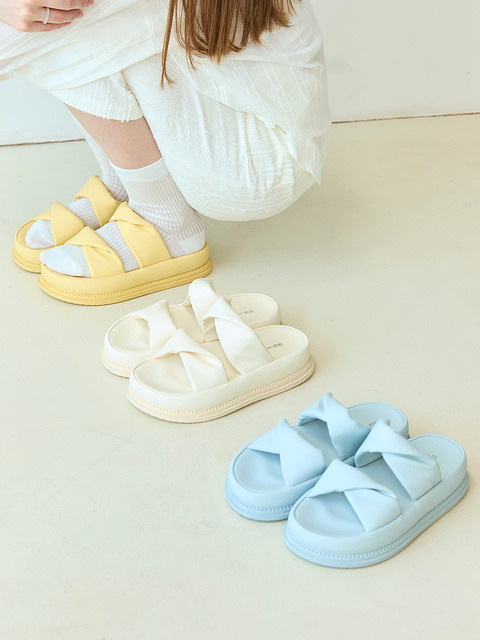 [스퍼] 블로그 트윈 보우 리본 투 스트랩 청키 플랫폼 슬리퍼 샌들 4.5cm -VS7074 (3color)