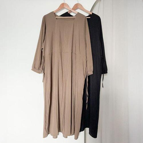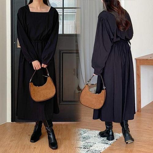 [신상오픈런]여성 스퀘어넥 롱원피스 가을 하객룩 핀턱 플리츠 포켓 디자인