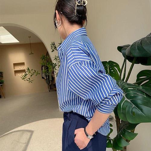 [엄지척]루즈핏 스트라이프 셔츠 오버핏 블라우스 남방_19645639_667501
