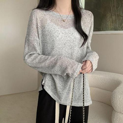 [셀러허브_여성트랜드패션]ONM 루즈핏 썸머 시스루 라운드넥 여름 긴팔 티셔츠