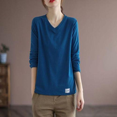 [에이치플러스몰]긴팔 여자 티셔츠 여름 브이넥 솔리드 데일리