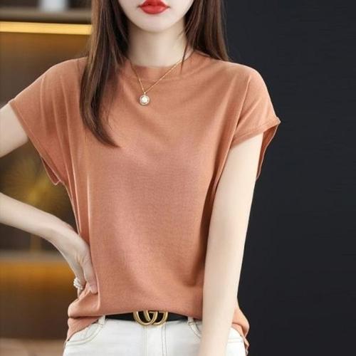 [엄지척]여성 쿨링 슬림 핏 여름 반팔 니트 티 라운드 셔츠_19678077_667501