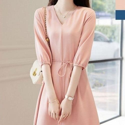 [엄지척]반팔 쉬폰 브이넥원피스 쉬폰원피스 여름 출퇴근 브이_19869985_667501